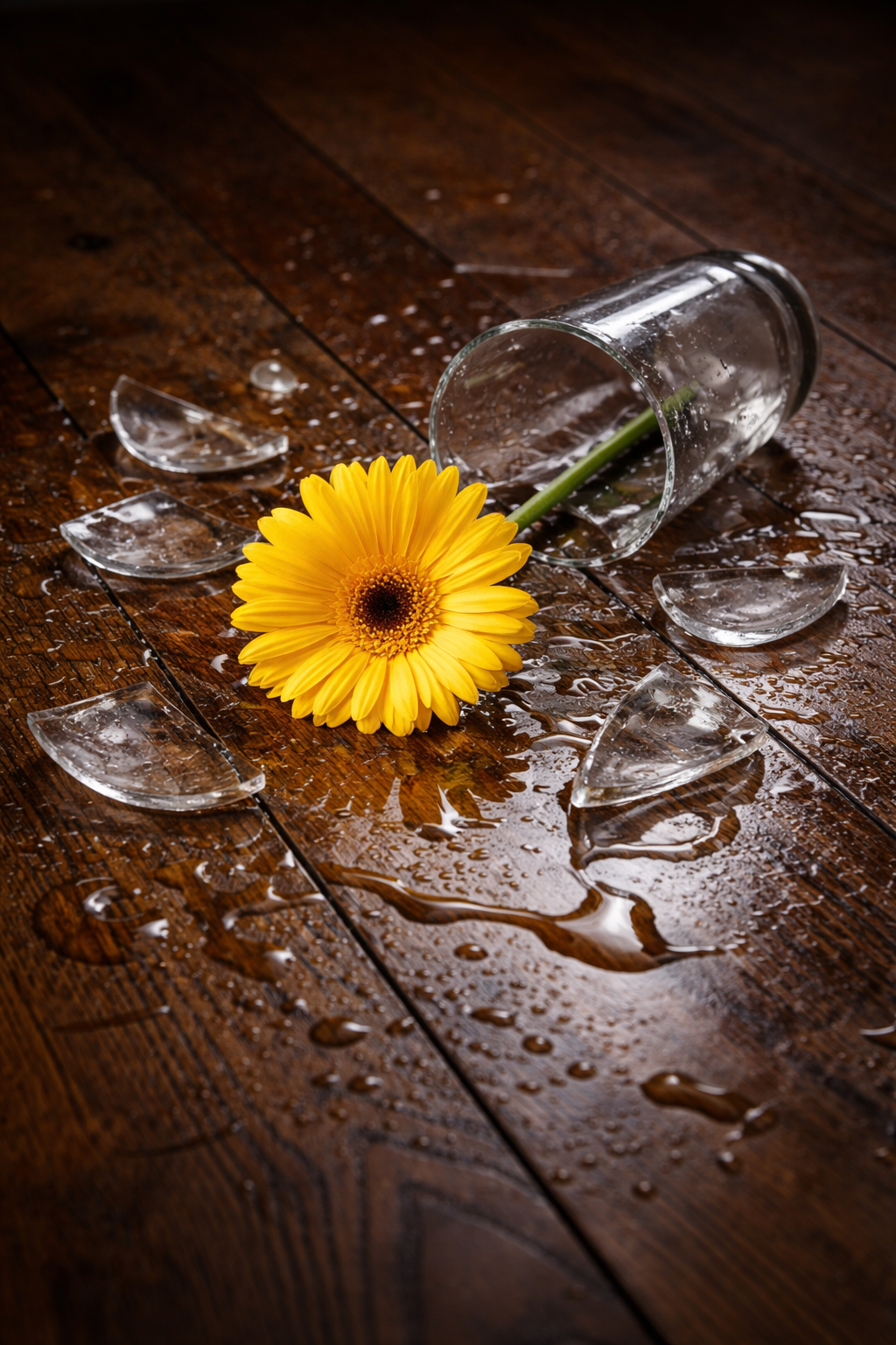 She collapses on the ground, and the vase shatters beneath her. Lying in the broken glass, she feels moistness against her cheek, leaving no space between the water and her tears. The two are indistinguishable from each other. Much like her and the dying flower. After all these years of rejection, she feels she is on her last days.